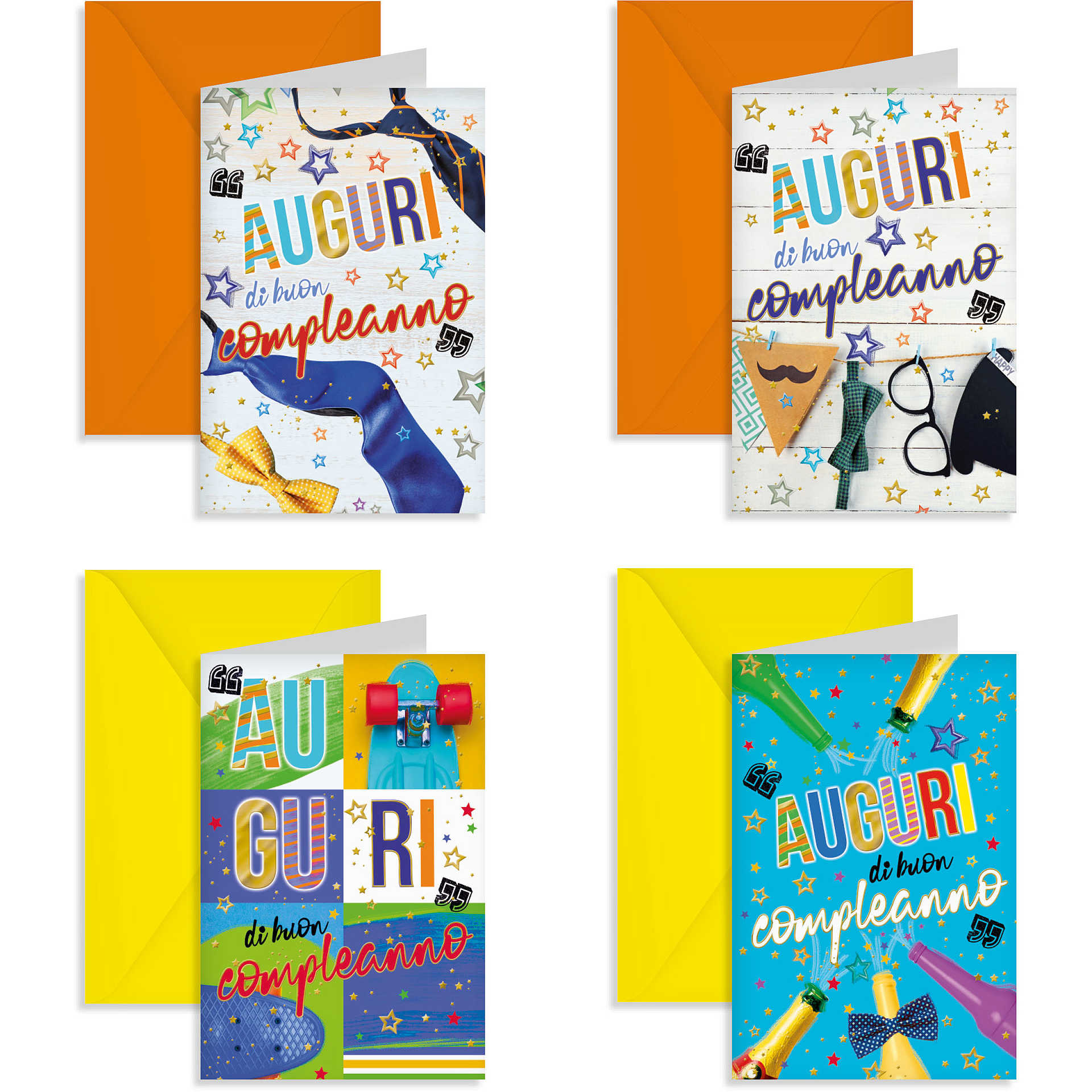 BIGLIETTI BUON COMPLEANNO MASCHILE 4 SOGGETTI