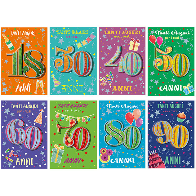 BIGLIETTI BUON COMPLEANNO MIGLIORI ANNI NUM.ASS.