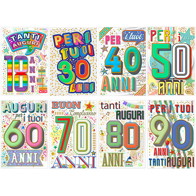 BIGLIETTI BUON COMPLEANNO MIGLIORI ANNI NUM.ASS.