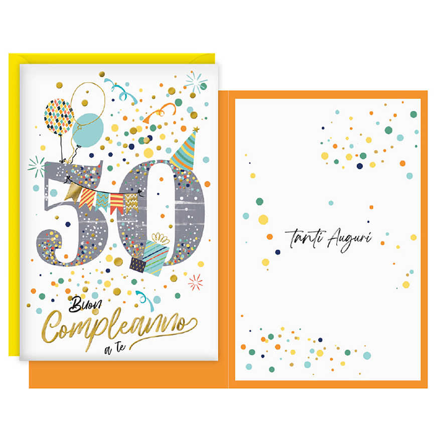 BIGLIETTI COMPLEANNO 50 ANNI CORIANDOLI