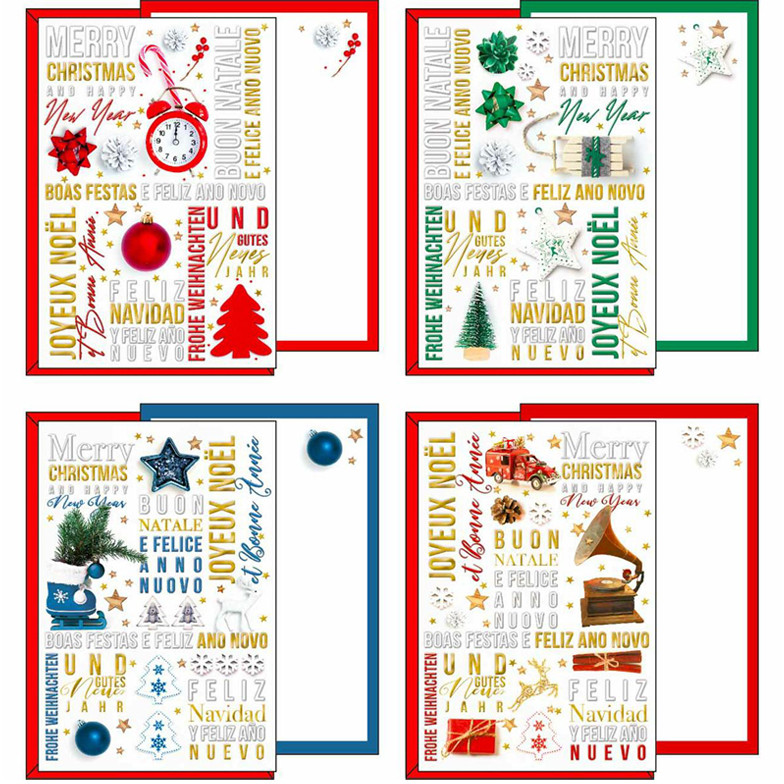 BIGLIETTI NATALE MULTILINGUE ORO RILIEVO