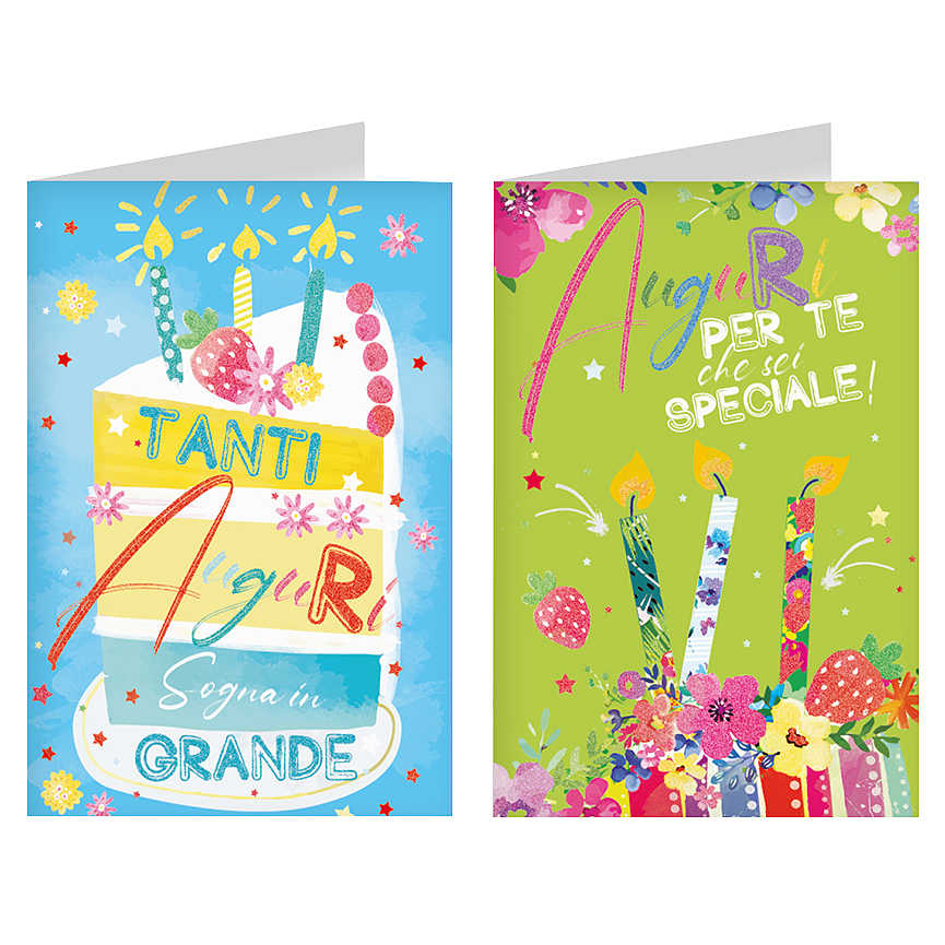 BIGLIETTI TANTI AUGURI FEMMINILI GLITTER