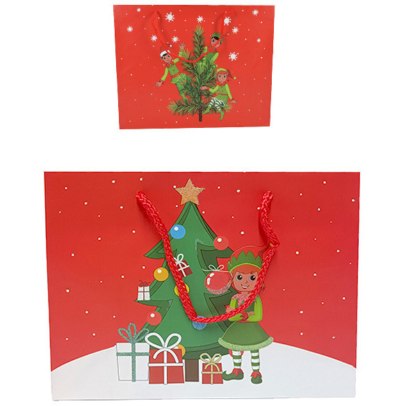 BORSE CARTA NAT.ELFO ROSSO 45,5X33X12 ASS.