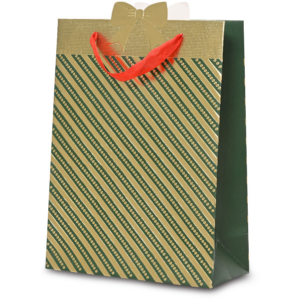 BORSE CARTA NATALE RIGHE VERDI E ORO 30XH42+12