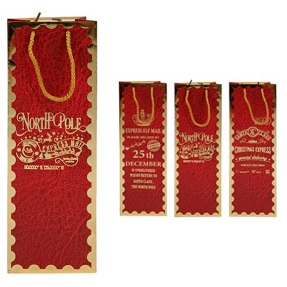 BORSE CARTA NATALE ROSSO SCRITTE ORO 12XH36+9CM