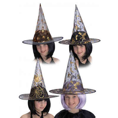 HALLOWEEN CAPPELLO STREGA DECORATO BIMBA H30CM