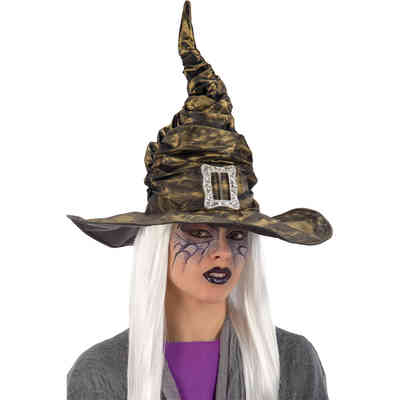 HALLOWEEN CAPPELLO STREGA VERDE TESSUTO MET. H40CM