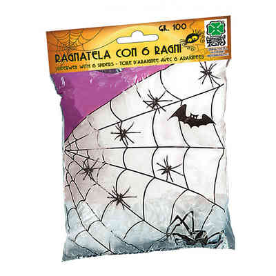 HALLOWEEN RAGNATELA BIANCA CON 6 RAGNI 100GR