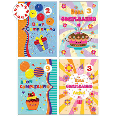 BIGLIETTI COMPLEANNO NUMERI ASSORTITI 1/10 ANNI