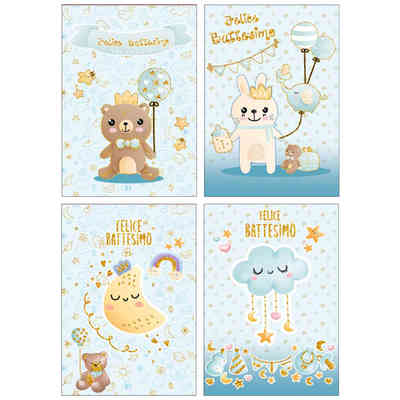 BIGLIETTI FELICE BATTESIMO AZZURRO CON ORO
