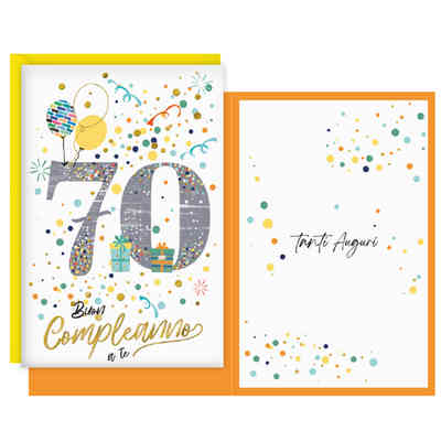 BIGLIETTI COMPLEANNO 70 ANNI CORIANDOLI