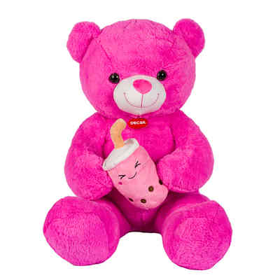 PELUCHE ORSO FUCSIA 80CM C/BUBBLE TEA 25144
