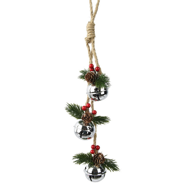 DECORAZIONE NATALIZIA CON CAMPANELLI ARGENTO H48CM