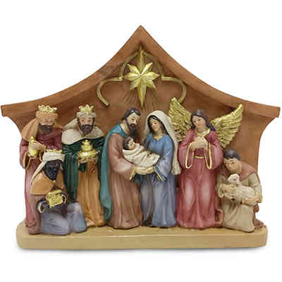 NATIVITA' C/CAPANNA IN POLIRESINA 11CM