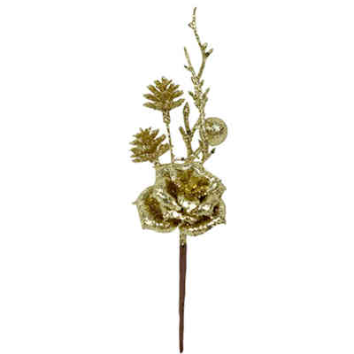 PICK STELO FIORE GLITTER ORO 21CM