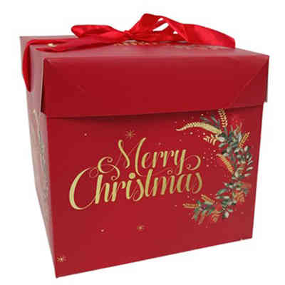 SCATOLA REGALO NATALE FIOCCO ROSSO 8,5X8,5XH16CM
