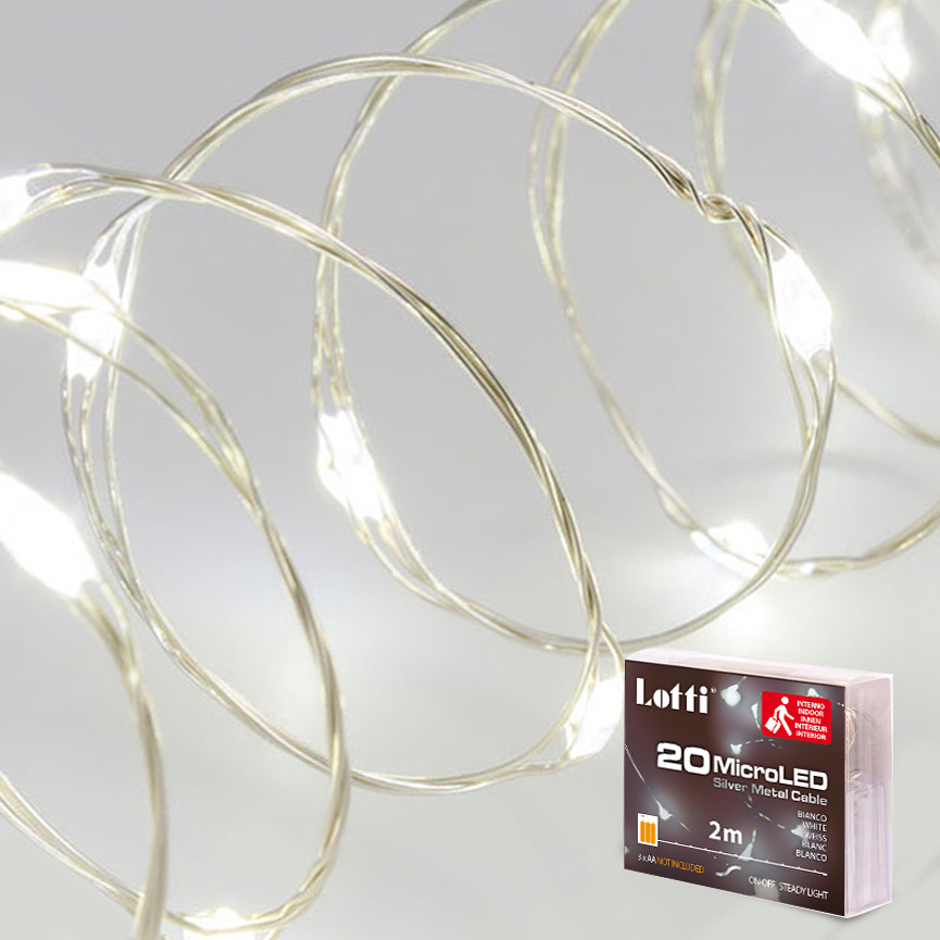 LUCI INT.LED 20 BATTER.BIA/F 1,9MT FILO SILVER