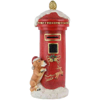 CASSETTA DELLA POSTA NATALE CON CAGNOLINO H70CM