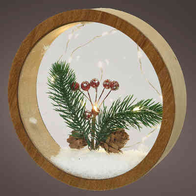 CERCHIO LEGNO C/LUCI BATTER E NEVE D18CM 486444