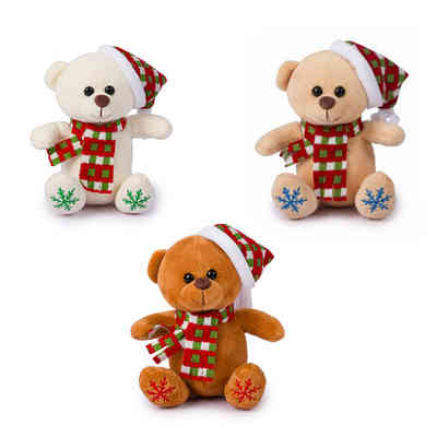 PELUCHE ORSETTO NATALE 15CM C/CAPP.3COL.28209