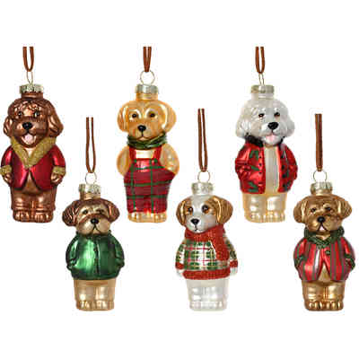PENDENTE VETRO CANI VESTITI H10,9CM