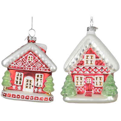 PENDENTE VETRO CASETTE CON LA NEVE H9,2CM