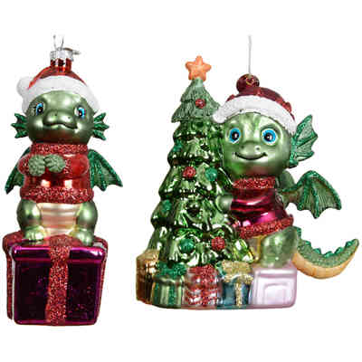 PENDENTE VETRO DRAGHETTO NATALIZIO H11,8CM