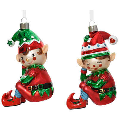 PENDENTE VETRO ELFO SEDUTO H11,5CM