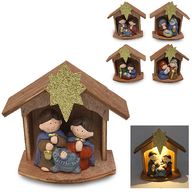 NATIVITA C/CAPANNA IN LEGNO C/LUCE 15CM