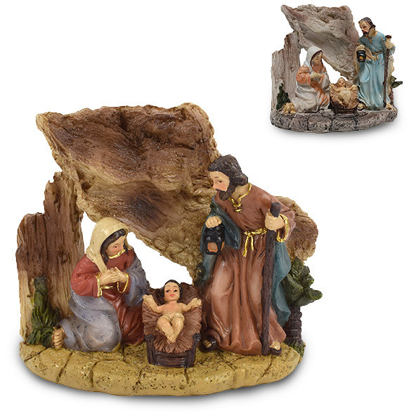 NATIVITA' C/CAPANNA TRONCO ULIVO RESINA 10X12CM