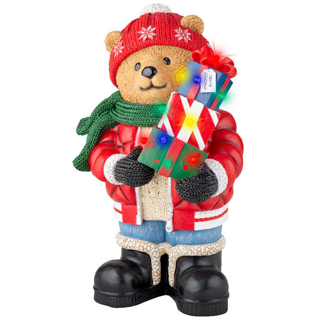 ORSO C/REGALI POLIRESINA C/LUCI H65CM 487886