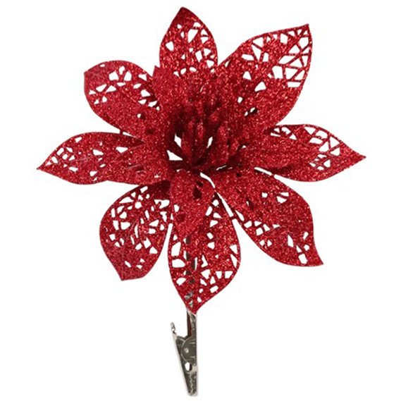 PICK FIORE ROSSO GLITTER CON CLIP 10CM