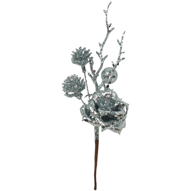 PICK STELO FIORE GLITTER ARGENTO 21CM