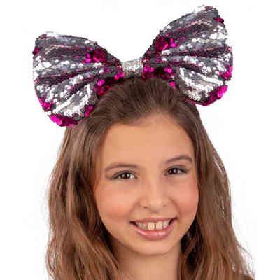 CERCHIETTO FIOCCO FUCSIA/ARGENTO CON PAILLETTES