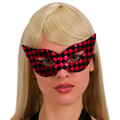 MASCHERA A SCACCHI ROSSO E NERO IN TESSUTO 01568