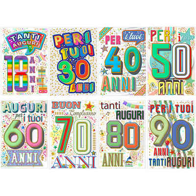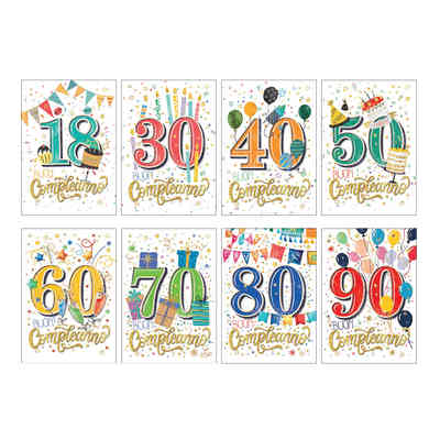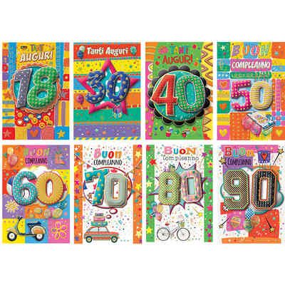 BIGLIETTI BUON COMPLEANNO NUM.ASS. 18-90 ANNI
