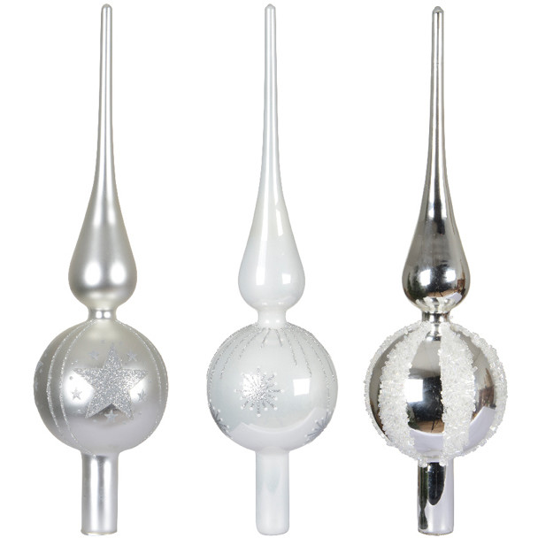 PUNTALE VETRO H31CM BIANCO ARGENTO DECORI GLITTER