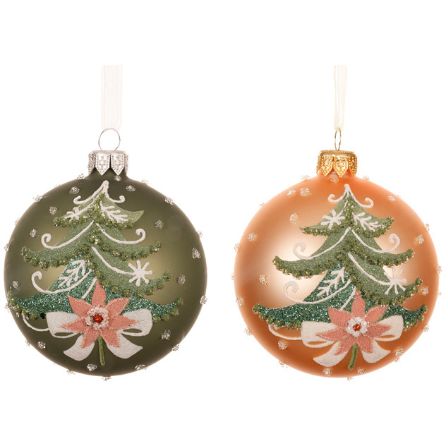 SFERA VETRO CON ALBERI GLITTER D8CM
