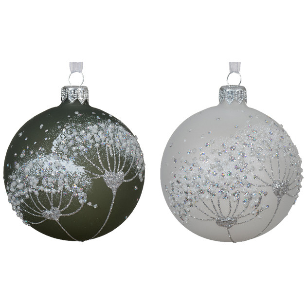 SFERA VETRO OPACA CON DECORO GLITTER ARGENTO D8CM