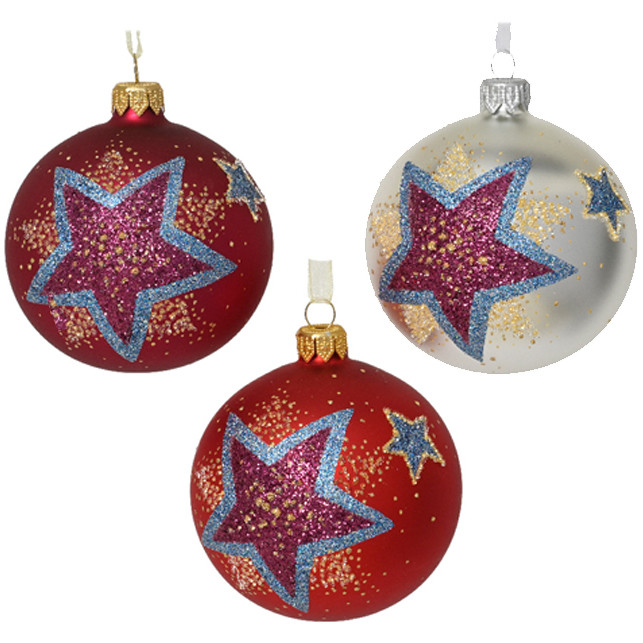 SFERA VETRO OPACA CON DECORO STELLA GLITTER D8CM