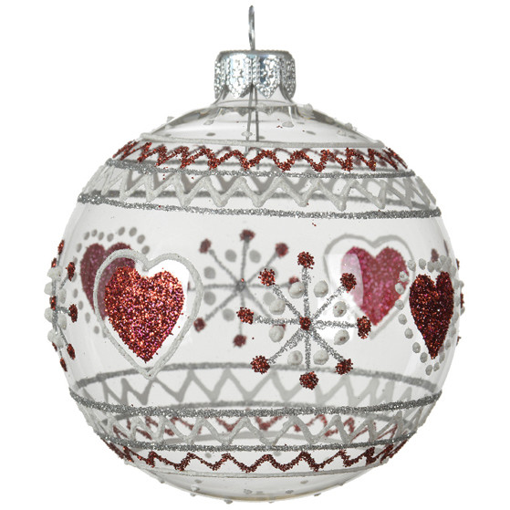 SFERA VETRO TRASPARENTE CON CUORI GLITTER D8CM