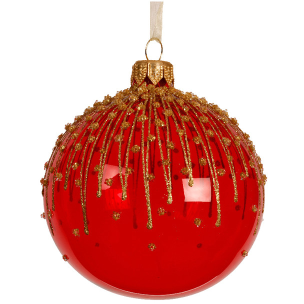 SFERA VETRO TRASPARENTE ROSSA CON GLITTER ORO D8CM